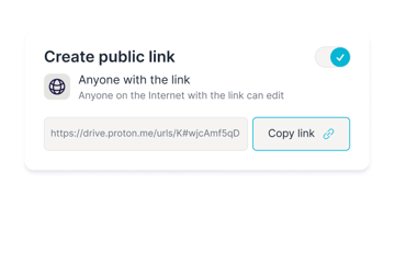 Invite internal and external collaborators to view and edit documents via email or secure sharing links, even if they don’t have a Proton Account.