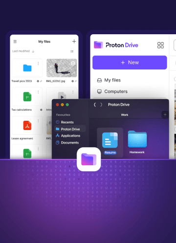 Unlike other file-sharing services, Proton Drive protects your files with end-to-end encryption — shielding your personal photos and professional documents from hackers, data breaches, and surveillance.