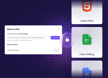 You can share files and folders from Proton Drive with anyone using secure shareable links. These links are generated locally in your browser, so Proton never has access to your files or folders.