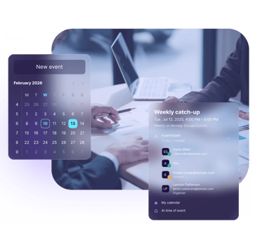 Profitez pleinement de Proton Calendar en utilisant votre adresse Proton Mail. Vous pouvez envoyer en toute sécurité des invitations à des événements directement depuis votre compte Proton Mail et ajouter des événements directement depuis votre boîte de réception sans changer d'application.