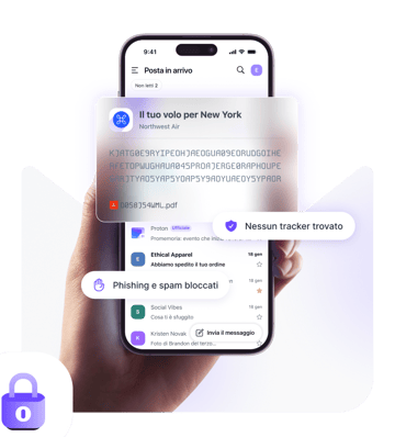 La crittografia end-to-end e la crittografia ad accesso zero di Proton Mail ti offrono la garanzia che nessun altro utente possa visualizzare le tue email. Nemmeno Proton può visualizzare il contenuto delle tue email e i relativi allegati.