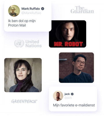 Van redactiekamers, activisten en internationale organisaties tot academici, Nobelprijswinnaars en filmpersonages; Proton Mail is de betrouwbare keuze voor veilige privécommunicatie. Besluit net als meer dan 100 miljoen mensen wereldwijd dat uw online privacy het beschermen waard is.