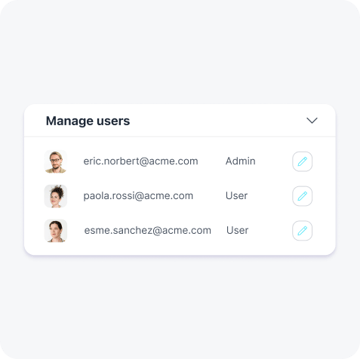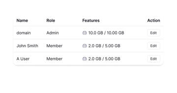 Hantera alla ditt företags e-postanvändare på ett ställe, med möjlighet att ändra behörigheter, gränser för lagringsutrymme med mera.