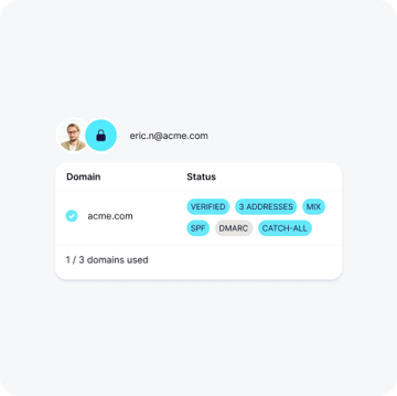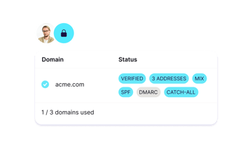 Välj ditt eget domännamn för en varumärkesanpassad e-postadress, och ladda upp ditt varumärkes ikon till Proton Mail för en arbetsyta som verkligen är din.