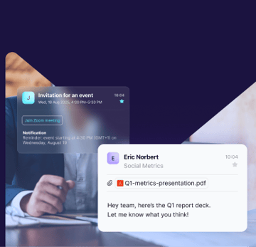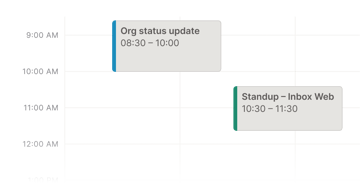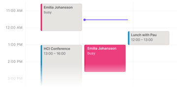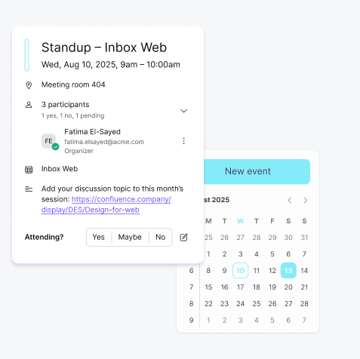 Att konfigurera möten har aldrig varit enklare. Skapa och redigera inbjudningar direkt, och hitta den perfekta tiden att mötas utan onödigt fram-och-tillbaka.