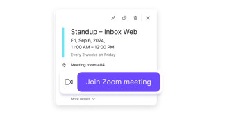 Upplev krångelfria virtuella samtal med Zoom-integration – möteslänkar kan enkelt genereras för varje inbjudan.