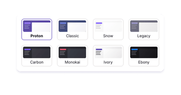 Välj bland olika teman och layoutalternativ, inklusive ljust och mörkt läge och flera färger, samt typsnitt och storlekar för bättre tillgänglighet.