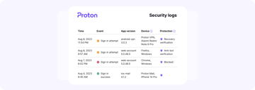 Proton Sentinel allows Proton Pass to protect your data even if an attacker has the correct password. Sentinel uses sophisticated AI systems that protect over 100 million Proton accounts and can identify the signatures of threat actors.