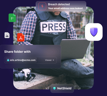 Os jornalistas estão sob ataque. A Proton protege os seus e-mails, contactos, documentos e outros dados com encriptação ponto a ponto para o manter a si e às suas fontes em segurança.