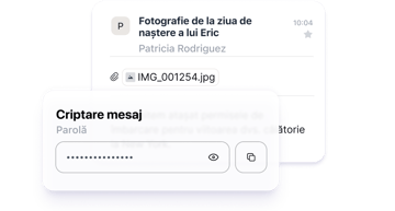 Setați parole și date de expirare pentru e-mailuri pentru a trimite informații contactelor dvs. în mod securizat și confidențial, chiar dacă acestea nu au Proton Mail.
