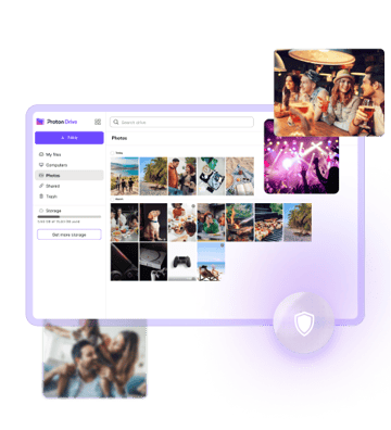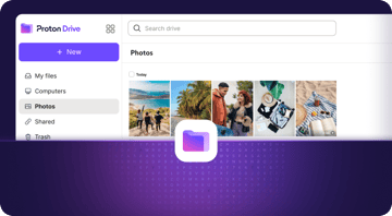 Proton Drive, güvenli bir depolama alanı sunarak değerli anılarınızı mobil aygıtınızdan veya tarayıcınızdan yedeklemenizi ve paylaşmanızı sağlar.