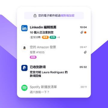 大多數熱門的電子郵件提供者,例如 Gmail、Outlook 和 Yahoo,都會掃描您的電子郵件內容並使用您的電子郵件地址來建立關於您的詳細個人資料,並從您的資料中獲利。