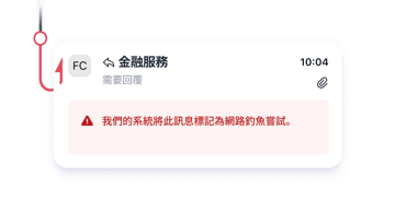 PhishGuard 會封鎖已知的網路釣魚企圖,並在電子郵件可疑時通知您。 連結確認可確保您永遠不會誤入惡意網站。