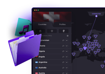Vår kill switch-funktion blockerar omedelbart din nätverkstrafik om din VPN-anslutning bryts, vilket förhindrar läckor som annars skulle avslöja din torrenting-aktivitet för din internetleverantör. Användning av kill switch-funktionen skyddar också din sanna IP-adress från att avslöjas för andra på samma P2P-delningsnätverk.