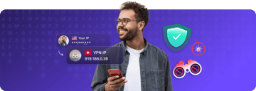 En VPN skyddar din integritet online genom att dölja din riktiga IP-adress och krypterar din internettrafik så att du kan surfa privat, undvika att bli spårad över internet och förhindra att dina surfdata säljs till annonsörer.