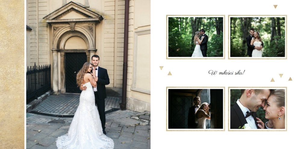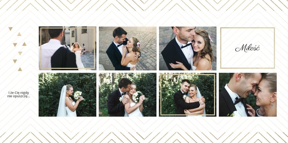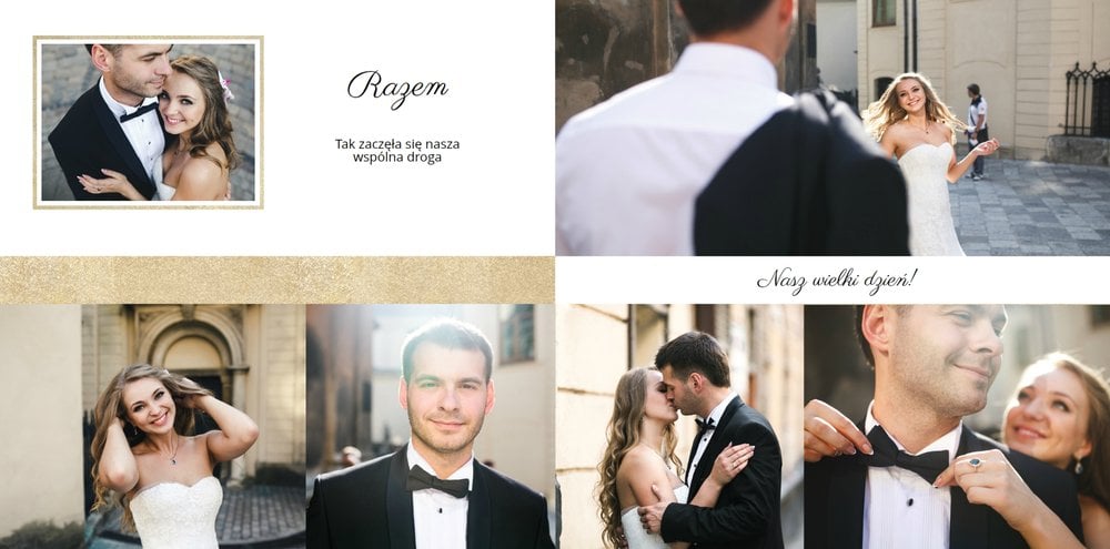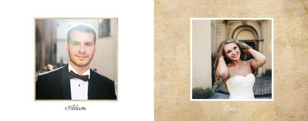 Wasze ślubne zdjęcia zasługują na oryginalną oprawę. Z szablonem Ona i On wszystkie kadry z najważniejszego dnia w Waszym życiu będą wyjątkowe. Minimalistyczna grafika, prosty układ zdjęć, jasne tła oraz charakterystyczna czcionka sprawią, że książka będzie piękną pamiątką na lata. Szablon Ona i On tworzy serię z szablonem Dla naszych Rodziców.