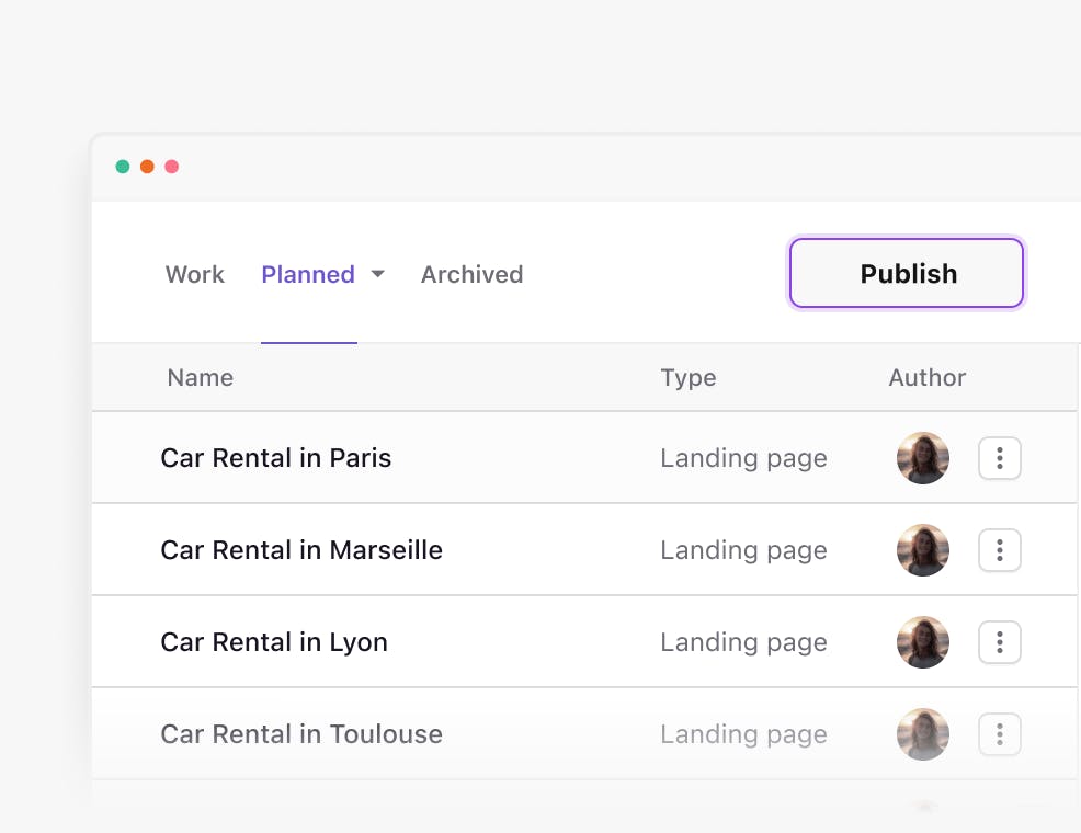 Our tools to automate landing page creation ensure your content is flawless before launch. You only define the blueprint pages and upload relevant data points.