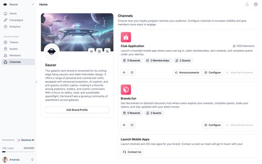 Launch dedicated apps, showcase rewards, and manage channels from one dashboard