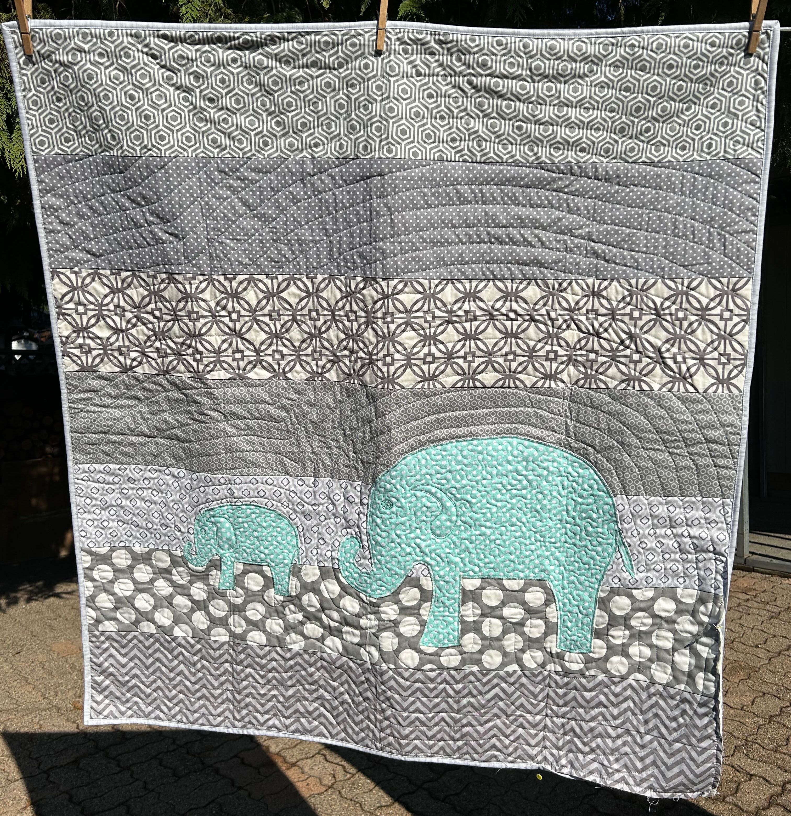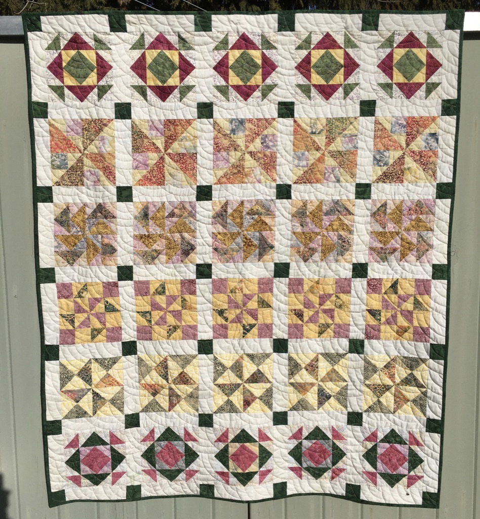 The first Silly Moon ruler I bought was “Turkey.” A friend of mine was helping vend at a quilt show and convinced me to buy it (Thanks, Judy D!). It was something that sat and sat. Finally, one day, I decided that I would use it on this donation quilt. You can read about it HERE.