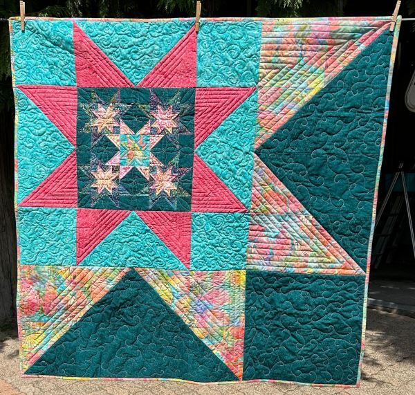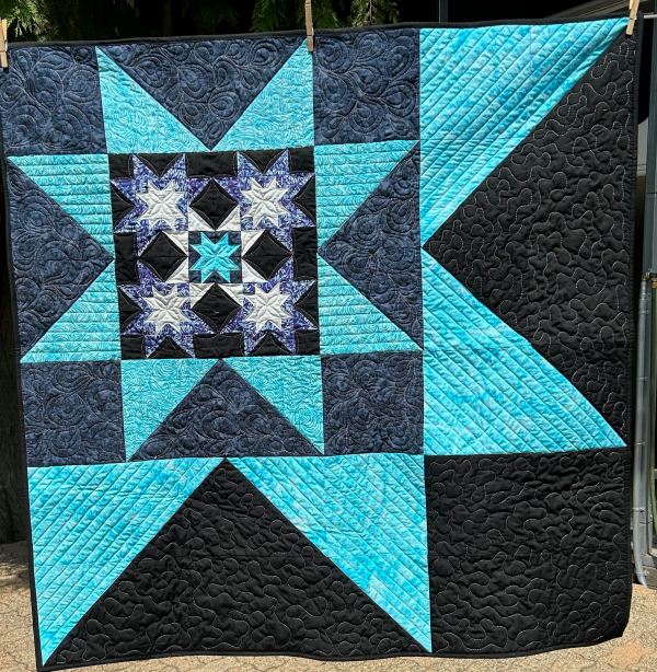 At one point, I bought the “Twinkle” rulers. I made this Christmas wreath for an Island Batik challenge in July 2021. I used the Twinkle ruler in the centre and the 4 corners. You can read about it HERE.