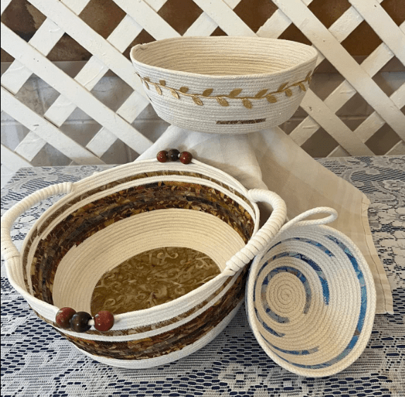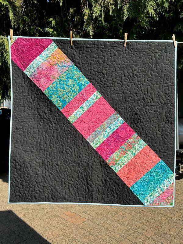 I believe it was during the Covid days that our guild had Kellie (owner of Silly Moon) do a workshop using 2 rulers, “Charming” and “Edgie 6“. We were instructed to make a small table mat using 5” squares. Well, for those of you that know, me, you know that I often don’t follow the exact instructions and I obviously made the following quilt bigger than a small table mat. In the centre, I followed the instructions in the class and used the appropriate rulers. Practicing the different motifs on different blocks. Then, I used a mixture of the Charming and Cupid rulers when finishing the quilt. You can read about it on THIS POST. I found the class was excellent and the rulers were easy to handle. You can access the on-line class HERE.