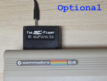 OPTIONAL: Full quality speech, voice and sound samples (only in combination with a userport MP3-Player module or in VICE emulator V3.10 required).