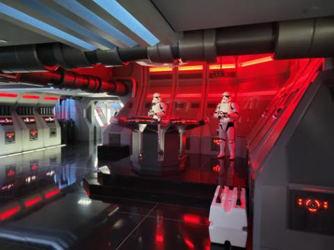 The true reason for the season to Galaxy’s Edge, however, is its rides. I’m not going to lie; whatever your wait time is for Rise of the Resistance, whether you have a Lightning Lane or you slug through the poor schmo standby queue, do it. It’s a required element that can’t be spoken too much about, because it’s not a mere ride; it’s an experience. It’s a four-level trip from Resistance recruitment to full-on detainment on a Star Destroyer before you’re sent on a free roaming spiral through Hell itself with Kylo Ren hot on your tail.