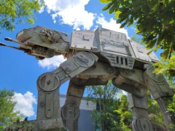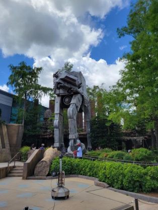 Star Tours, the longest wait time we saw either day we were at Hollywood Studios was 25 minutes. It’s a misnomer. The line flies, and we were on in 10. Now, anything Star Wars related is bound to draw serious crowds, unless you’re talking a nostalgic theatrical run of Caravan of Courage: An Ewok Adventure. Yet you get a flavor of Endor in the approach to Star Tours, including a badass AT-AT towering over Ewok Village. It’s a tasty display that whets the appetite for a ride that once took up to three hours’ wait and at one time, reserved riding times. When it first opened, it was as eye-popping as the new rides and the Avatar: Flight of Passage ride at Animal Kingdom.