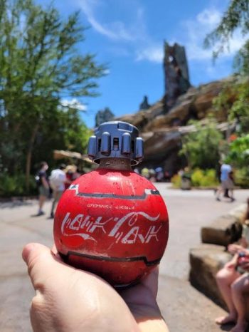If you’re so inclined, you can shell out a couple hundred to build your own prop lightsaber or you’ll drop a single Benjamin to construct a fully-operational droid. You can read all the recent articles online about the price gouging running rampant all over Disney, and there’s full merit to the claims. Case in point, I was daffy enough to lay out $6.00 for the alien scrawled, globe-shaped Coke bottle made something a mini-rage amongst Star Wars collectors. Considering we rarely drink soda, I had to have one. It was the go-to souvenir (frankly, the only souvenir) we settled on at Galaxy’s Edge, since the heavy lean on merch is stuffed plush characters, Rebel pilot helmets and First Order battle gear, all geared for children.