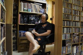 My labyrinth of media was at the rancher, and I do miss it because of the beautiful neighbors we had, plus my monster-wide office which even had my old drum set and congas to spank in-between assignments. Those were some amazing years of my life and before we were forced to move out by the landlord who was selling the place, I had nine total shelves loaded with books, CD, vinyl and videos. I wish I’d taken more photos than these, but you literally walked into a self-made corridor of media which intimidated most of our guests but had a few wanting to stay there the entire time during a visit and pick my brain for industry stories.