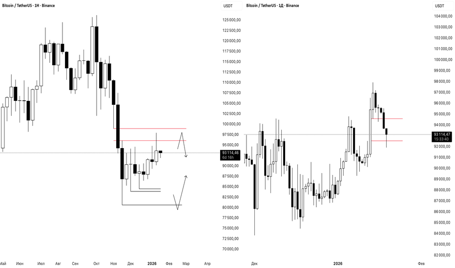 Идеально увидеть быстрый закол уровня $95 800 фитилем и такой же быстрый возврат обратно в диапазон. Это и будет сигналом, что стопы «выбриты» и путь для истинного движения (или более глубокой коррекции) открыт. Если же мы покажем закреп выше 96-98к, то гипотеза может быть пересмотрена