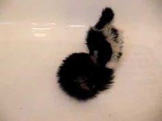 Baby wild striped skunks playing. I put them in the tub when I clean their cage. They will be released back to the wild.I am a licensed wildlife rehabilitato...