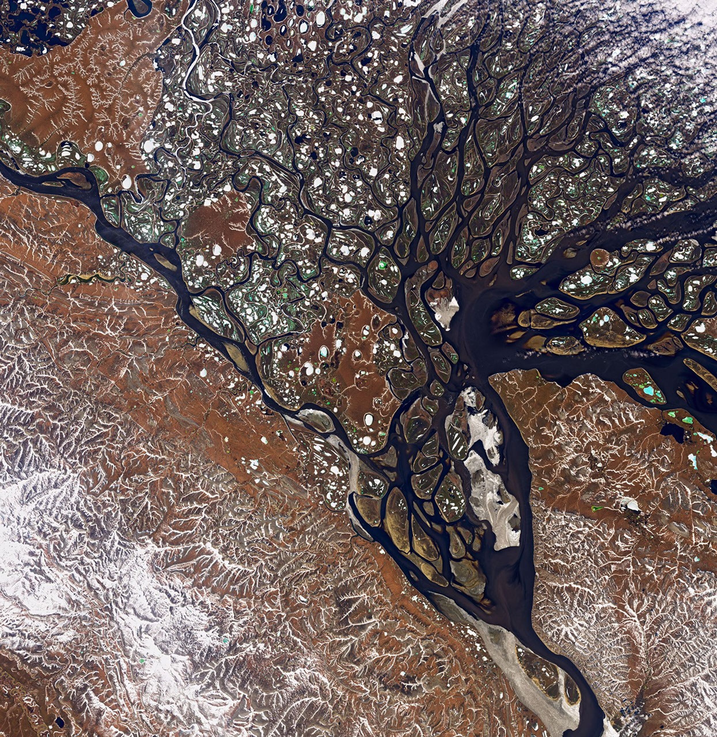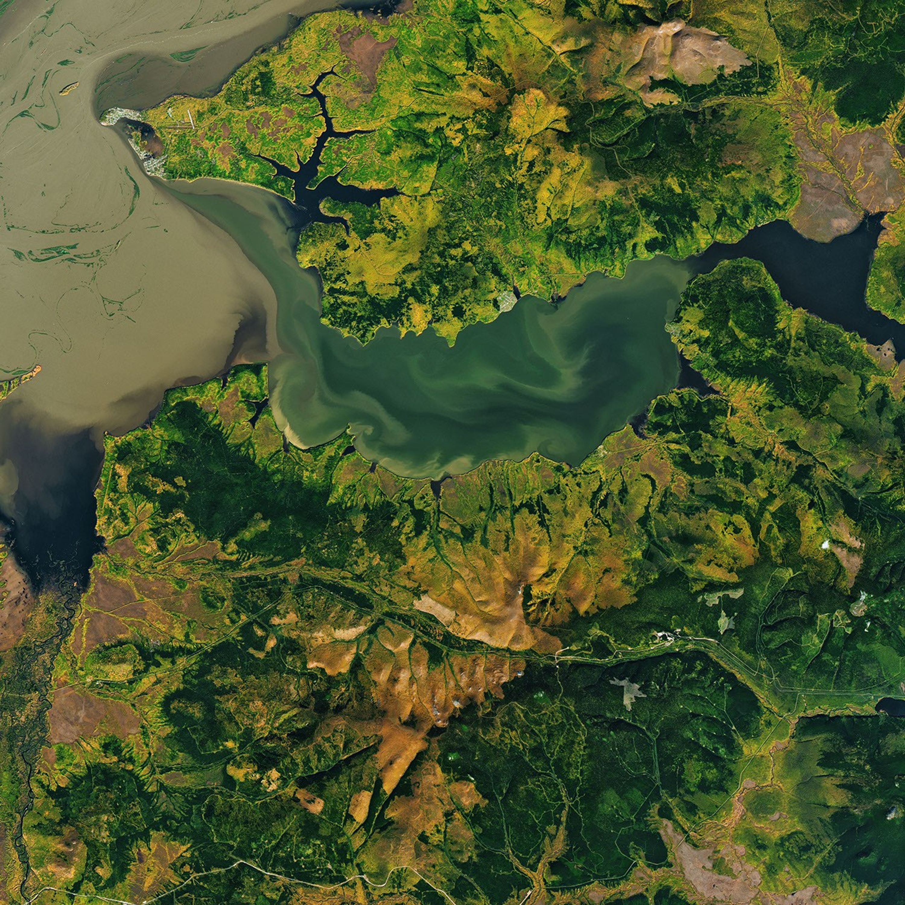 A natural-color Landsat 8 satellite image of the Athabasca oil sands in Alberta, Canada, acquired on July 15, 2016. -