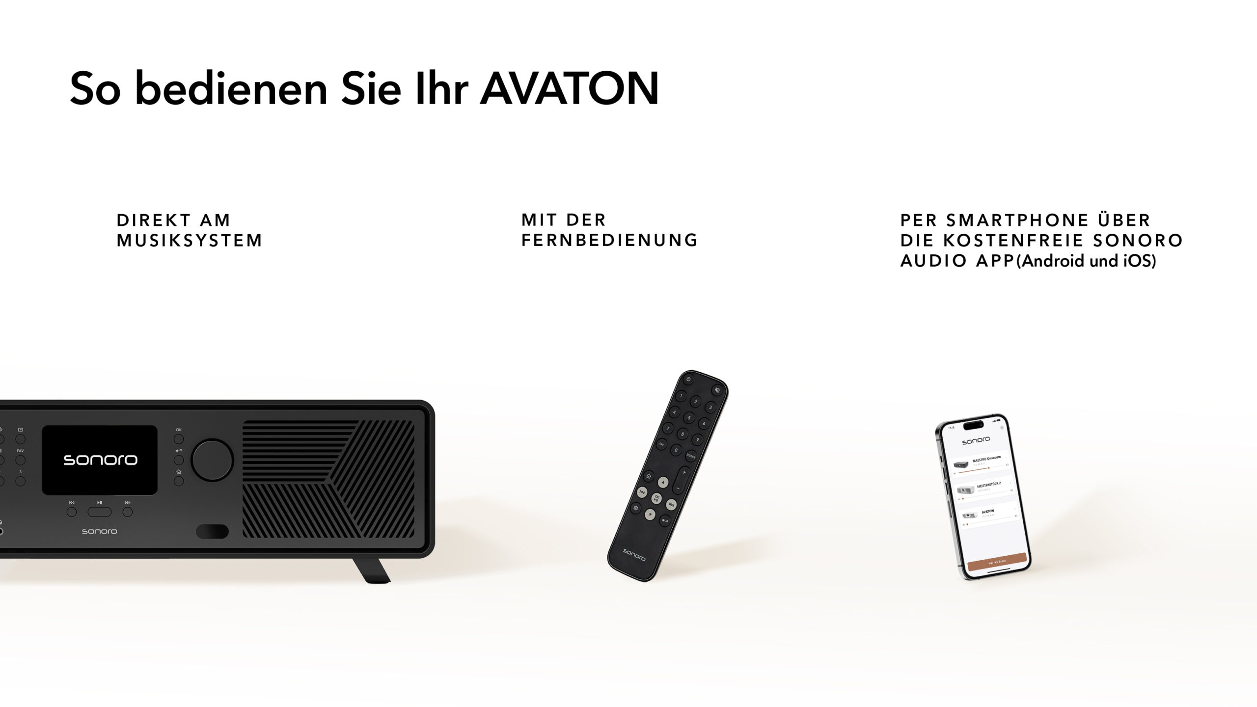 Gracias a la introducción de una nueva interfaz de usuario mejorada y una pantalla de 4 pulgadas, el manejo directamente en el dispositivo con sus numerosos botones de selección directa o mediante el nuevo mando a distancia es mucho más intuitivo. AVATON también ofrece la opción de control a través de la aplicación de audio sonoro y una integración perfecta en diversos sistemas domésticos inteligentes.