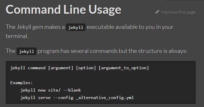 No more databases, comment moderation, or pesky updates to install, just your content. Markdown, Liquid, HTML & CSS go in. Static sites come out ready for deployment. Permalinks, categories, pages, posts, and custom layouts are all first-class citizens here. Sick of dealing with hosting companies? GitHub Pages are powered by Jekyll, so you can easily deploy your site using GitHub for free, custom domain name and all. Jekyll is a static site generator. It takes text written in your favorite markup language and uses layouts to create a static website. You can tweak the site’s look and feel, URLs, the data displayed on the page, and more. The Jekyll gem makes a jekyll executable available to you in your terminal. Typically you’ll use jekyll serve while developing locally and jekyll build when you need to generate the site for production. To change Jekyll’s default build behavior have a look through the configuration options.