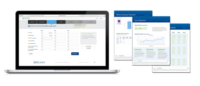The world's leading and only patented online business valuation service. Discover a business's worth in minutes. BizEquity's step-by-step valuation process calculates your business value based on 143 data points. Monitor your value on our dashboard and understand what forces and metrics can affect your company. Optimize your business with BizEquity's extensive library of information and useful resources. Knowing the true value of your business is critical to proper business planning and achieving personal goals. Through our valuation process, we can help answer the questions that will lead you to make informed decisions for your future. BizEquity offers certified business valuation reports that meet legal requirements where financial information must be verified. Our CBV reports are personally prepared by a professional. Plan for the future of your business with a qualified succession plan. Prepare for taxable events such as gifting or grants.