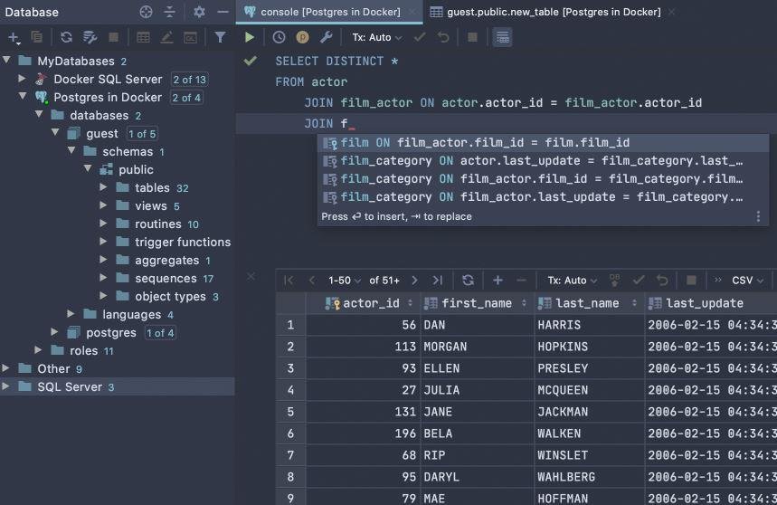 Meet DataGrip, our new database IDE that is tailored to suit the specific needs of professional SQL developers. Allows you to execute queries in different modes and provides a local history that keeps track of all your activity and protects you from losing your work. Lets you jump to any table, view, or procedure by its name via the corresponding action, or directly from its usages in the SQL code. Gives you an extended insight into how your queries work and into the database engine behavior, so you can make your queries more efficient. DataGrip provides context-sensitive code completion, helping you to write SQL code faster. Completion is aware of the tables structure, foreign keys, and even database objects created in code you're editing. DataGrip detects probable bugs in your code and suggests the best options to fix them on the fly. It will immediately let you know about unresolved objects, using keywords as identifiers and always offers a way to fix the problems.