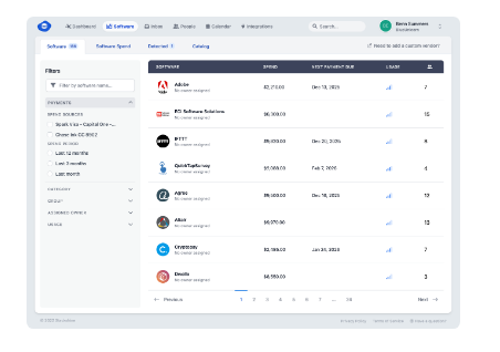 Features include: IT asset and license inventory, full asset lifecycle management, software renewal management, license rightsizing, employee on/offboarding, vendor audits, and IT spend reporting.