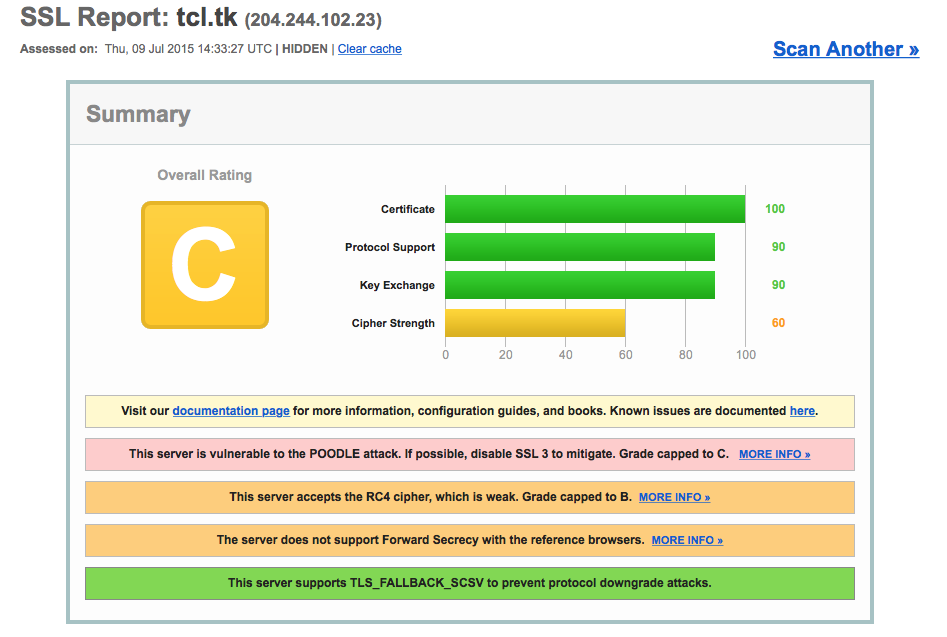Running the (very useful) SSL server test at ssllabs.com against https://www.tcl.tk gives a grade of C; see attachment for details.