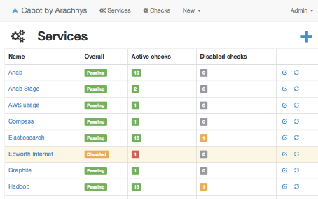 Cabot is a free, open-source, self-hosted infrastructure monitoring platform that provides some of the best features of PagerDuty, Server Density, Pingdom and Nagios without their cost and complexity. It provides a web interface that allows you to monitor services (e.g. "Stage Redis server", "Production ElasticSearch cluster") and send telephone, sms or hipchat/email alerts to your on-duty team if those services start misbehaving or go down - all without writing a line of code. Best of all, you can use data that you're already pushing to Graphite/statsd to generate alerts, rather than implementing and maintaining a whole new system of data collectors. We built Cabot as a Christmas project at Arachnys because we couldn't wrap our heads around Nagios, and nothing else out there seemed to fit our use case. We're open-sourcing it in the hope that others find it useful.