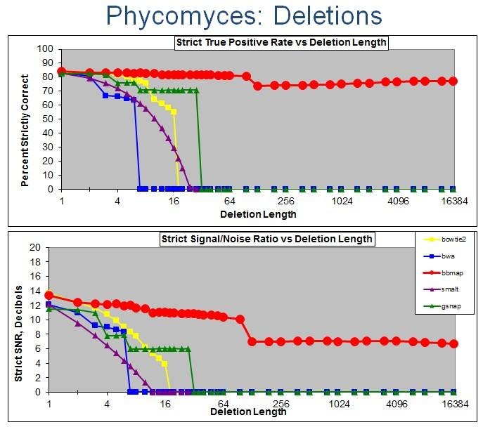 BBMap: Short read aligner for DNA and RNA-seq data. Capable of handling arbitrarily large genomes with millions of scaffolds. Handles Illumina, PacBio, 454, and other reads; very high sensitivity and tolerant of errors and numerous large indels. Very fast.