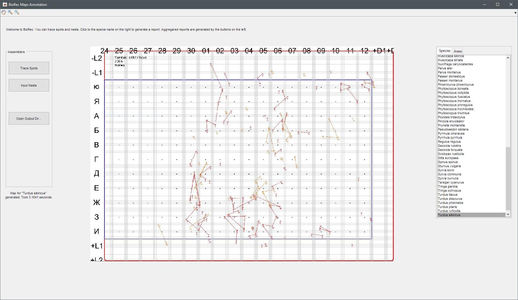 Namely, bird census based on personal inspection or small (~10 km^2) regions with recording birds' position and behaviour on paper.