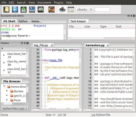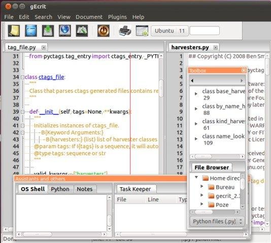 gEcrit is a Python orientated source code editor. It tries to keep the interface as clean as possible and keep the menus simple. It features all the common features a Python programmer might need, including an interactive Python shell.