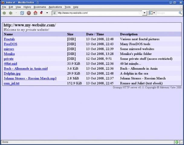 Grumpy is a simple, easy to install, open-source web server for Linux and Windows. Grumpy appears to have become a rather strong web server with some very good points: easy to install, lightweight and secure.