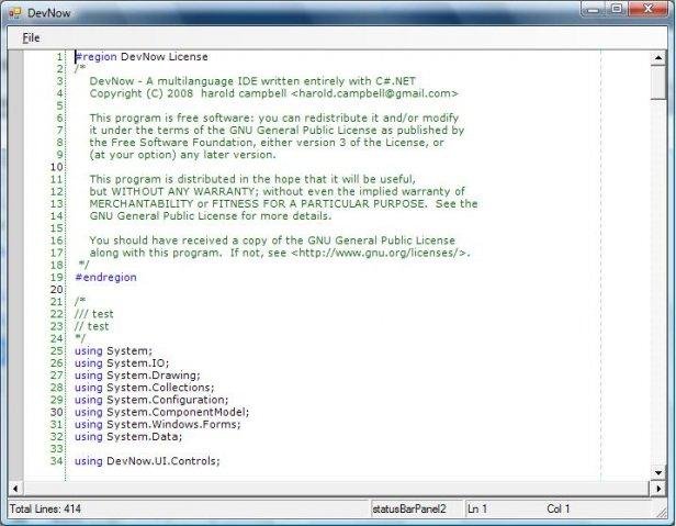 A multi-language IDE written entirely with C#.NET. My goals include giving developers a framework that will allow them to add new languages, provide diagramming services to support language modeling and visualization (eg UML Class Diagrams, etc).
