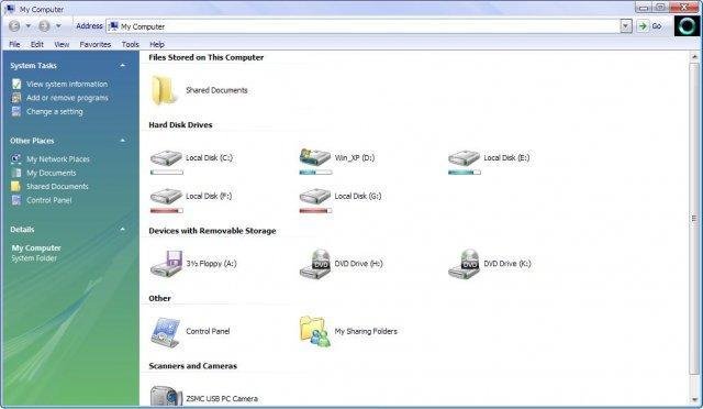 Changes the drive icons shown in Windows "My Computer", to a nearly Vista drive icon, showing the drive's free space with a smooth colored horizontal bar.