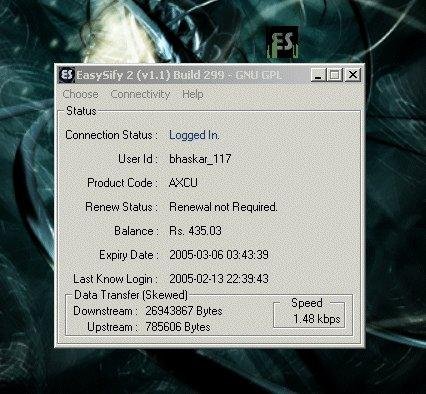 EasySify is an alternative authentication client for Sify Broadband services. It improves the client provided by sify by the following - requires less ram, Has keep alive and home page launch selection features missing in the official client....