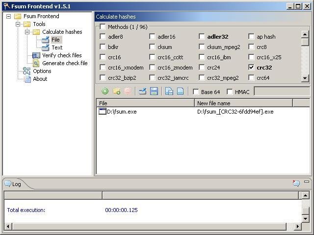 Fsum Frontend is a files integrity checker. It can calculate 96 hash and checksum algorithms(CRC32, MD5, SHA1, SHA2, ADLER, DHA256, FORK256, ...). You can verify your files using a .sfv/.md5/.sha1/.sha2 file or create your own checksum file.