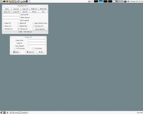 HacBurn is a gtk2 based frontend for the cdrtools, mpg321, vorbis-tools, cdparanoia, and lame. It is written in perl using gtk2-perl.