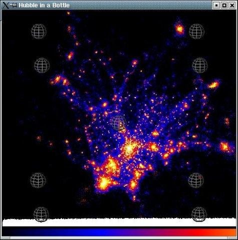 A high performance visualization tool for stars and particles able to run on Beowulfs. Rendering step is implemented separately and optimized for SSE, compatible with OpenGL. Navigation mechanism with quaternions. Ten color maps, sobel contour detect